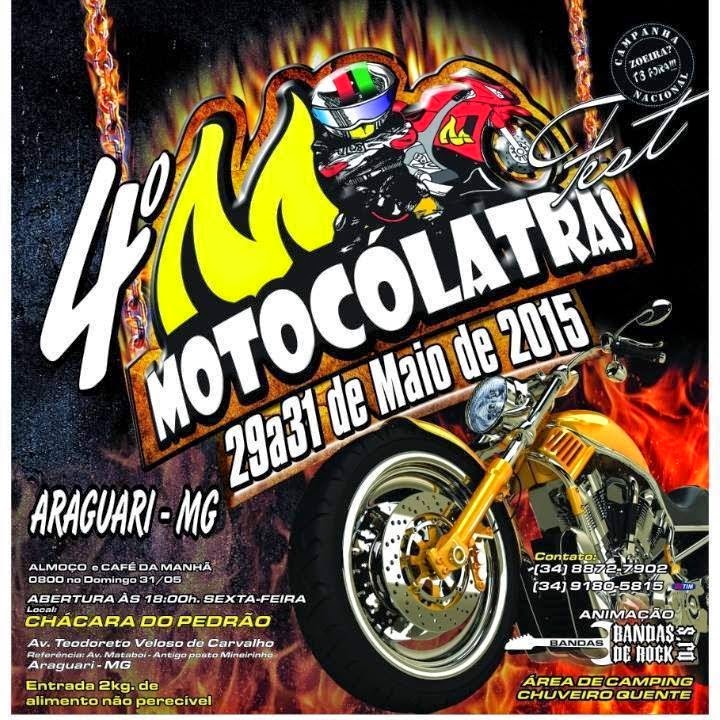 ÁREA DE CAMPING, CAFÉ DA MANHA, ALMOÇO 0800, CHUVEIRO QUENTE, PRAÇA DE ALIMENTAÇÃO, SHOWS DE ROCK, EXPOSITORES, REVENDAS DE MOTOS - ENTRADA 2 KG DE ALIMENTOS NÃO PERECÍVEIS. A CHÁCARA DO PEDRÃO FICA AO LADO DA BR 050, LOGO NA ENTRADA DA CIDADE. PARA QUEM ESTA VINDO DE CATALÃO-GO (BASTA OLHAR NO GOOGLE MAPS: VIVEIRO FLORA BRASIL ARAGUARI) FICA AO LADO.