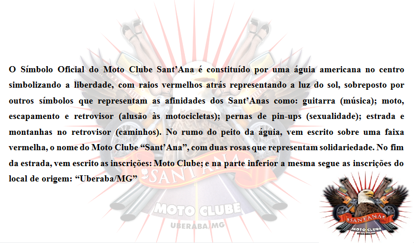 O Moto Clube Sant'ana nasceu da mais bela essência: "a amizade". Três amigos/irmãos que gostavam muito de moto e de viajar, estavam pesquisando para entrar em moto clubes da cidade, mas todos o que entraram em contato, haviam regras ou estilos que não os agradavam. Mas após uma perda muito grande, esses três irmãos de escolha, resolveram traduzir o sonho de suas vidas numa chama para aquecer os seus dias e homenagear aquela que os uniu: a "Santa Ana". Ana, ou melhor, Rosa como era mais conhecida, foi uma pessoa lendária em fazer o bem a todos sem saber a quem e sempre com sorriso no rosto independente do que fosse. Famosa por sempre pulverizar o bem, não só cuidou e ajudou muitas pessoas, como também ensinou a todos os que a conheciam, a importância da gentileza, respeito e amor ao próximo.